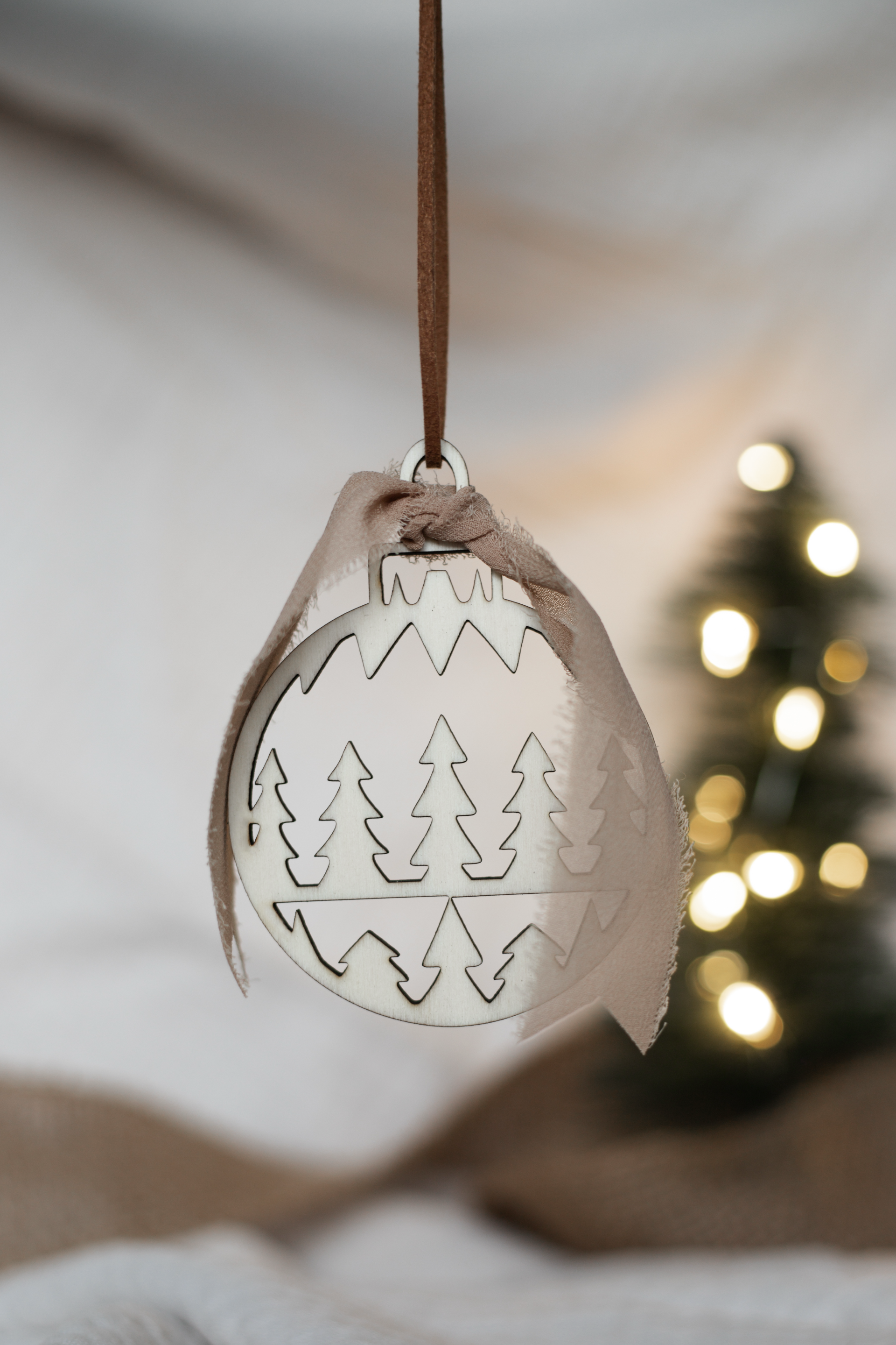 Een eye catcher voor in de kerstboom. Deze open houten kerstbal met een subtiele dennebomen zorgt voor een opvallende maar ook natuurlijke look in je kerstboom. Het subtiele lintje zorgt voor een stijlvolle afwerking.